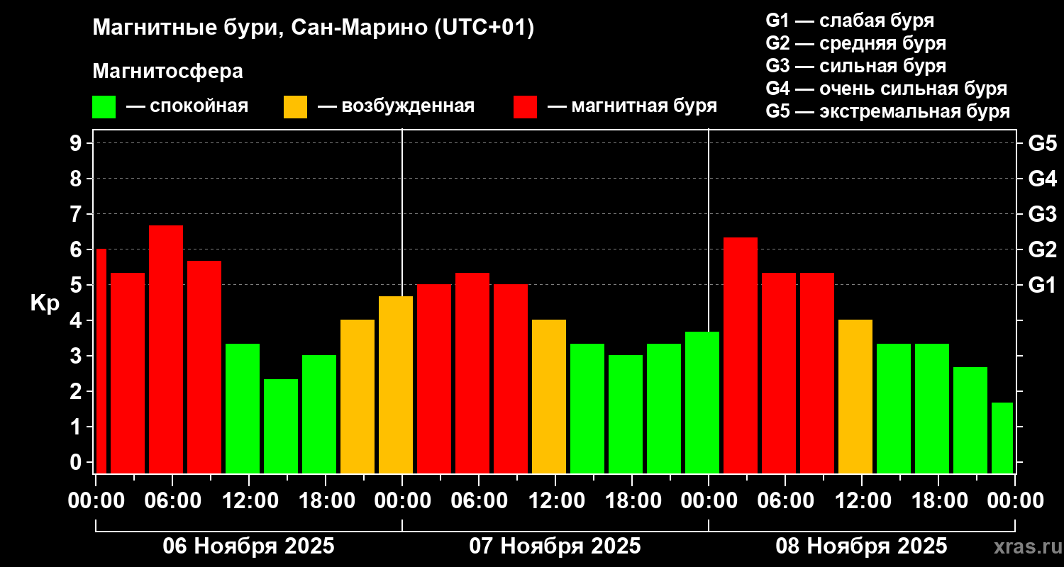 Магнитные бури Сан-Марино 8 ноября 2025 года