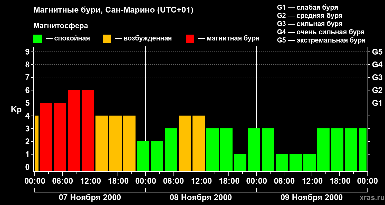 Магнитные бури Сан-Марино 9 ноября 2000 года