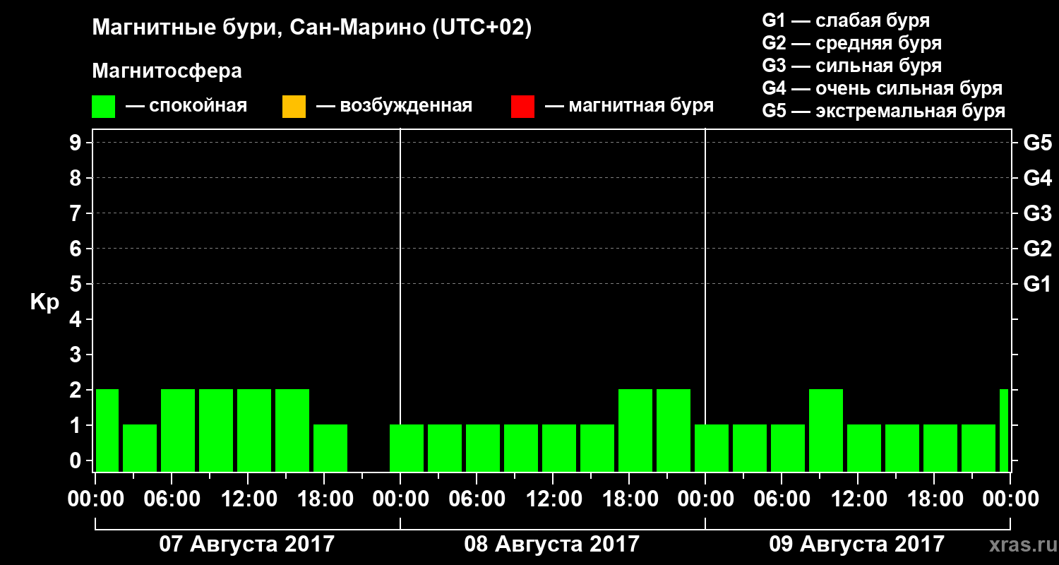Магнитные бури Сан-Марино 9 августа 2017 года
