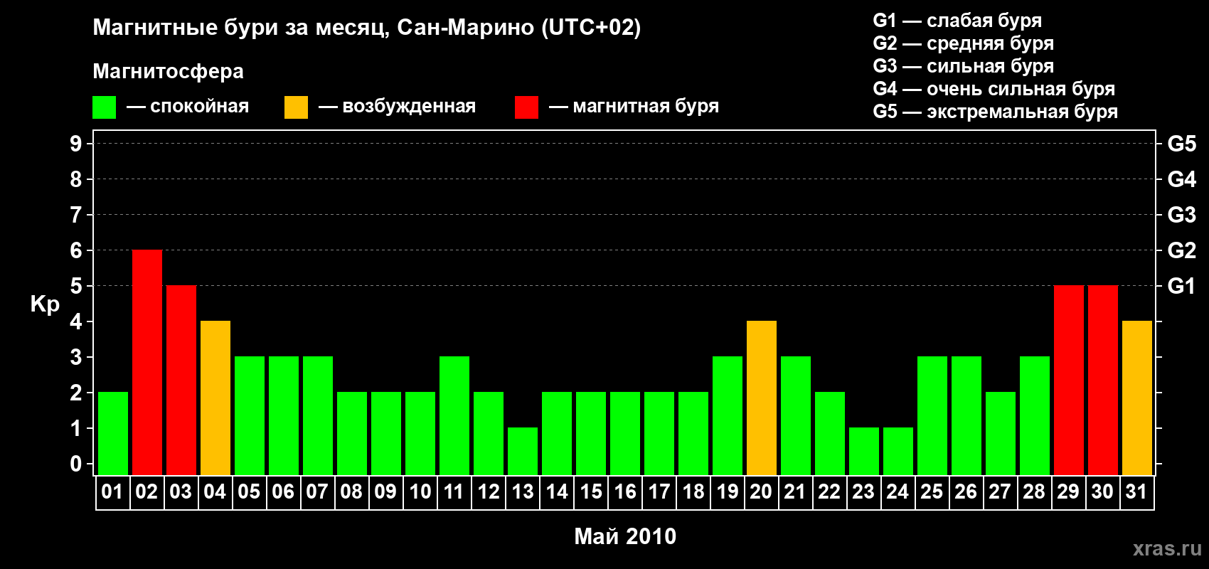 Список магнитных бурь в мае 2010 года