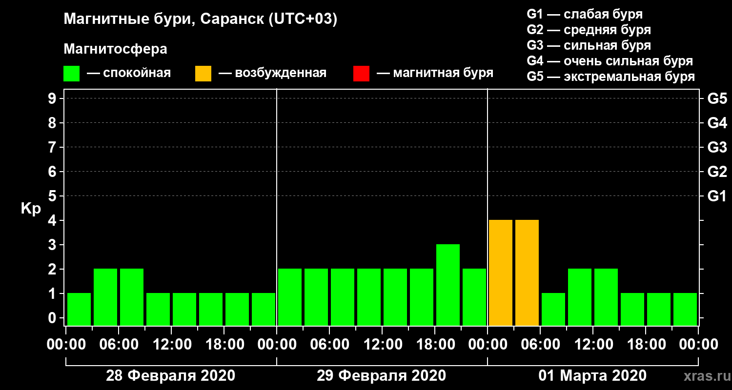 Магнитные бури в Саранске 1 марта 2020 года