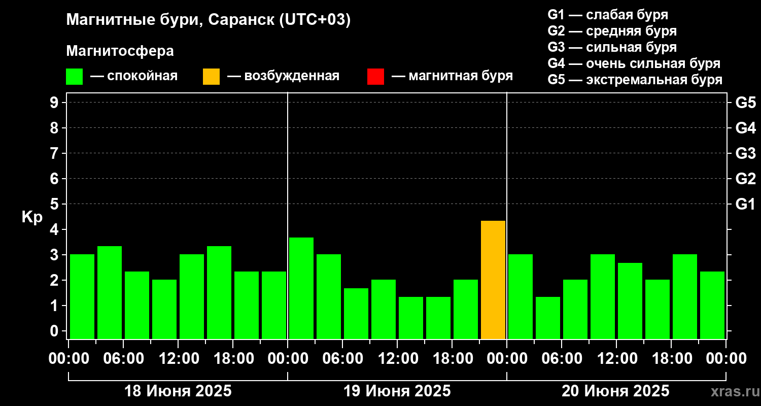 Магнитные бури в Саранске — 20 июня 2025 года