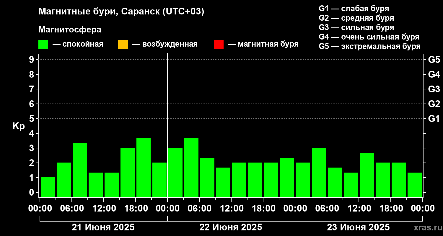 Магнитные бури в Саранске — 23 июня 2025 года