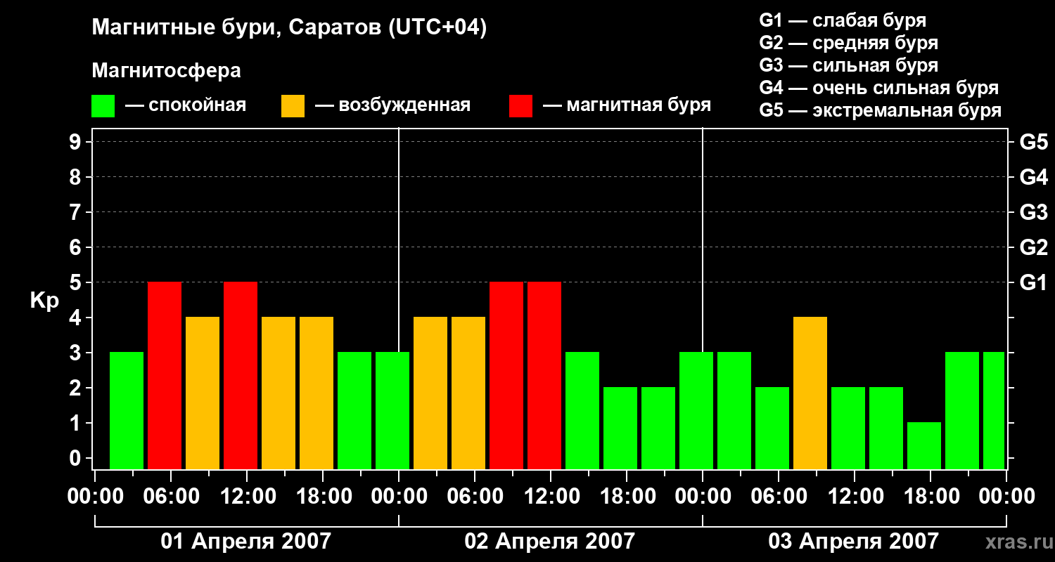 Магнитные бури в Саратове — 3 апреля 2007 года
