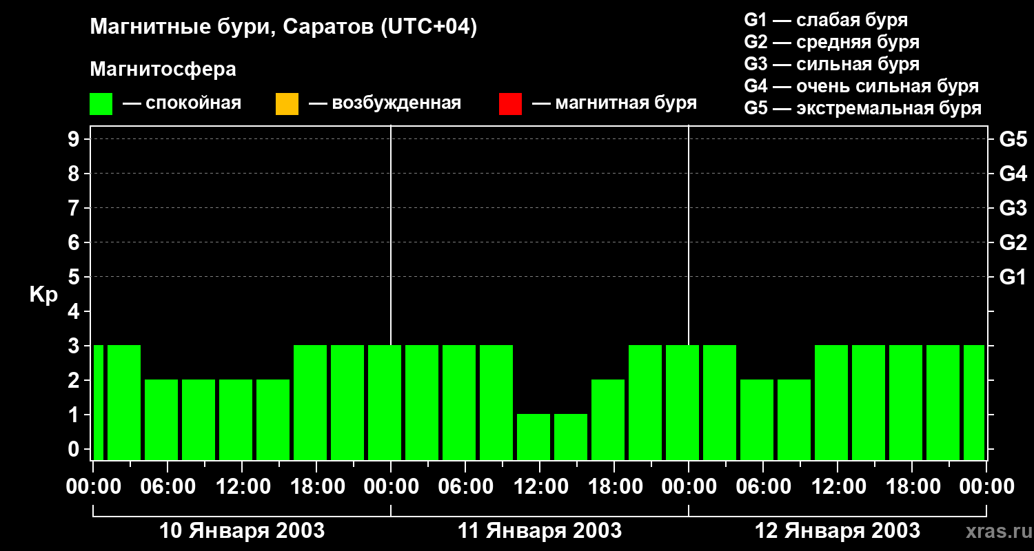 магнитосфера Земли была спокойной (Kp = 3.00)