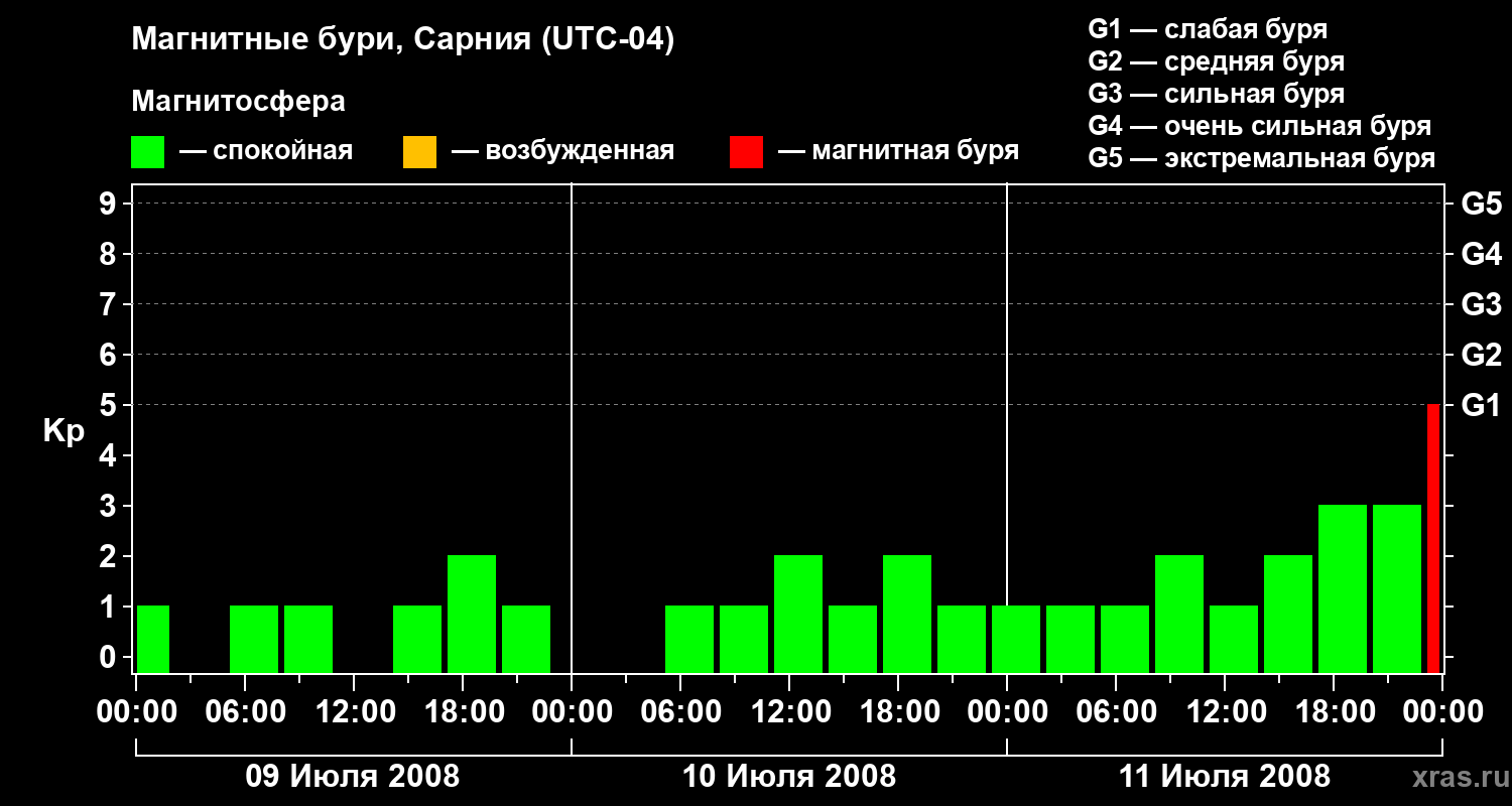 Магнитные бури в Сарнии 11 июля 2008 года