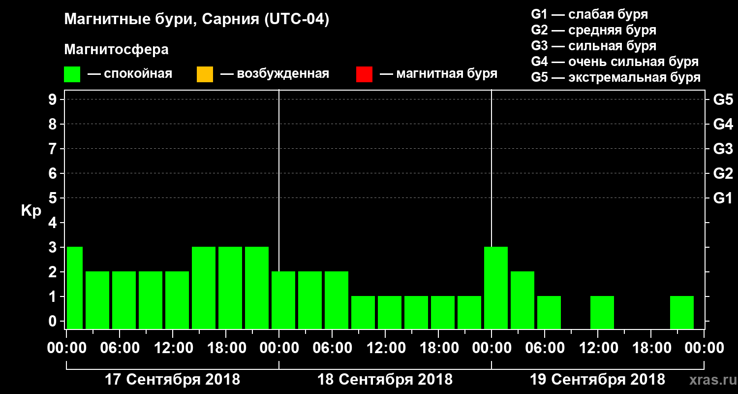 Магнитные бури в Сарнии 19 сентября 2018 года