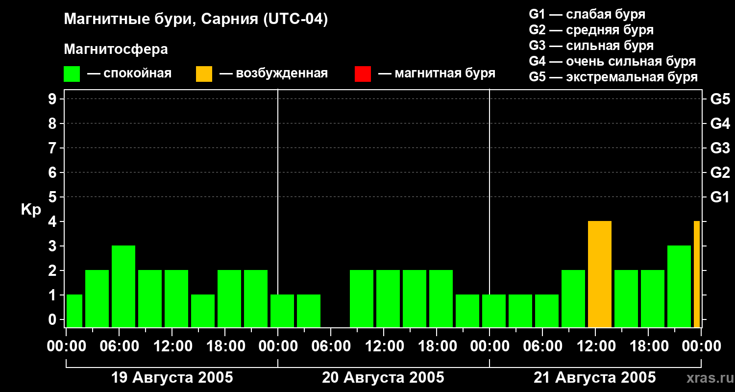 Магнитные бури в Сарнии — 21 августа 2005 года