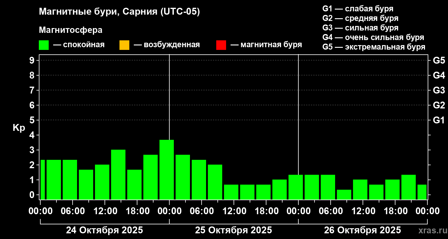 Магнитные бури в Сарнии — 26 октября 2025 года