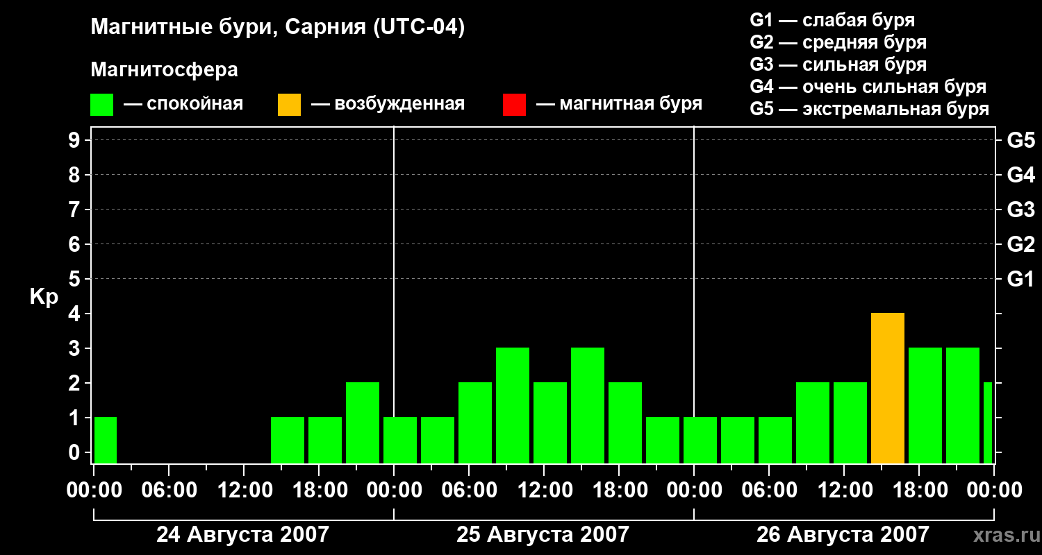 Магнитные бури в Сарнии — 26 августа 2007 года