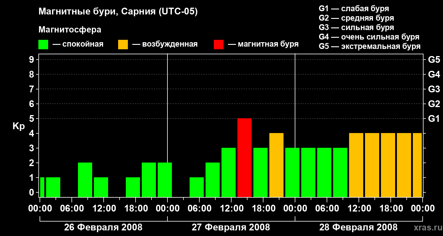 Магнитные бури в Сарнии 28 февраля 2008 года