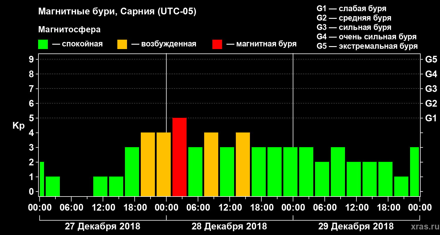 Магнитные бури в Сарнии в декабре 2018 года