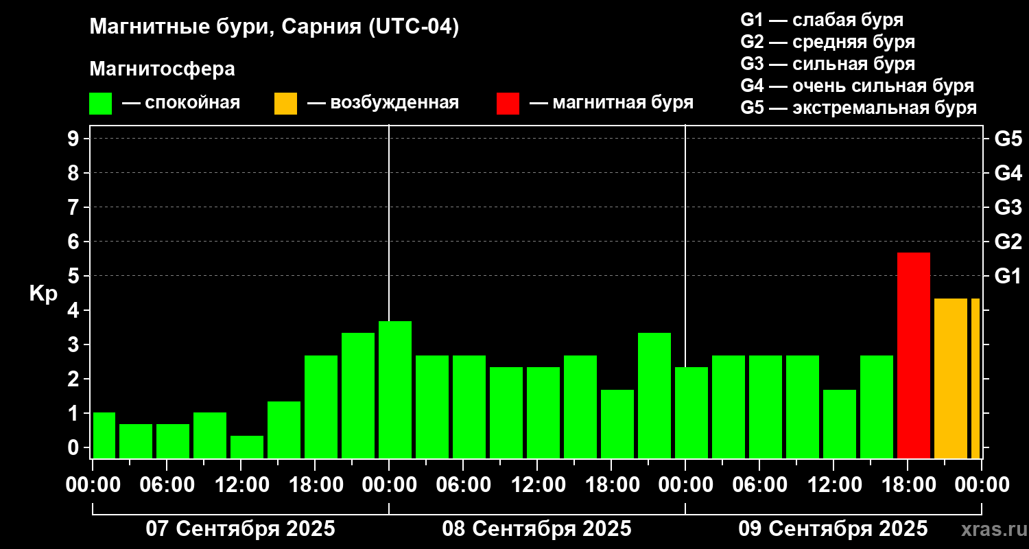 Магнитные бури в Сарнии 9 сентября 2025 года