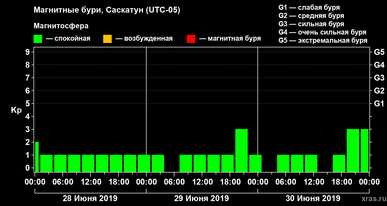 Магнитные бури в Саскатуне — 30 июня 2019 года