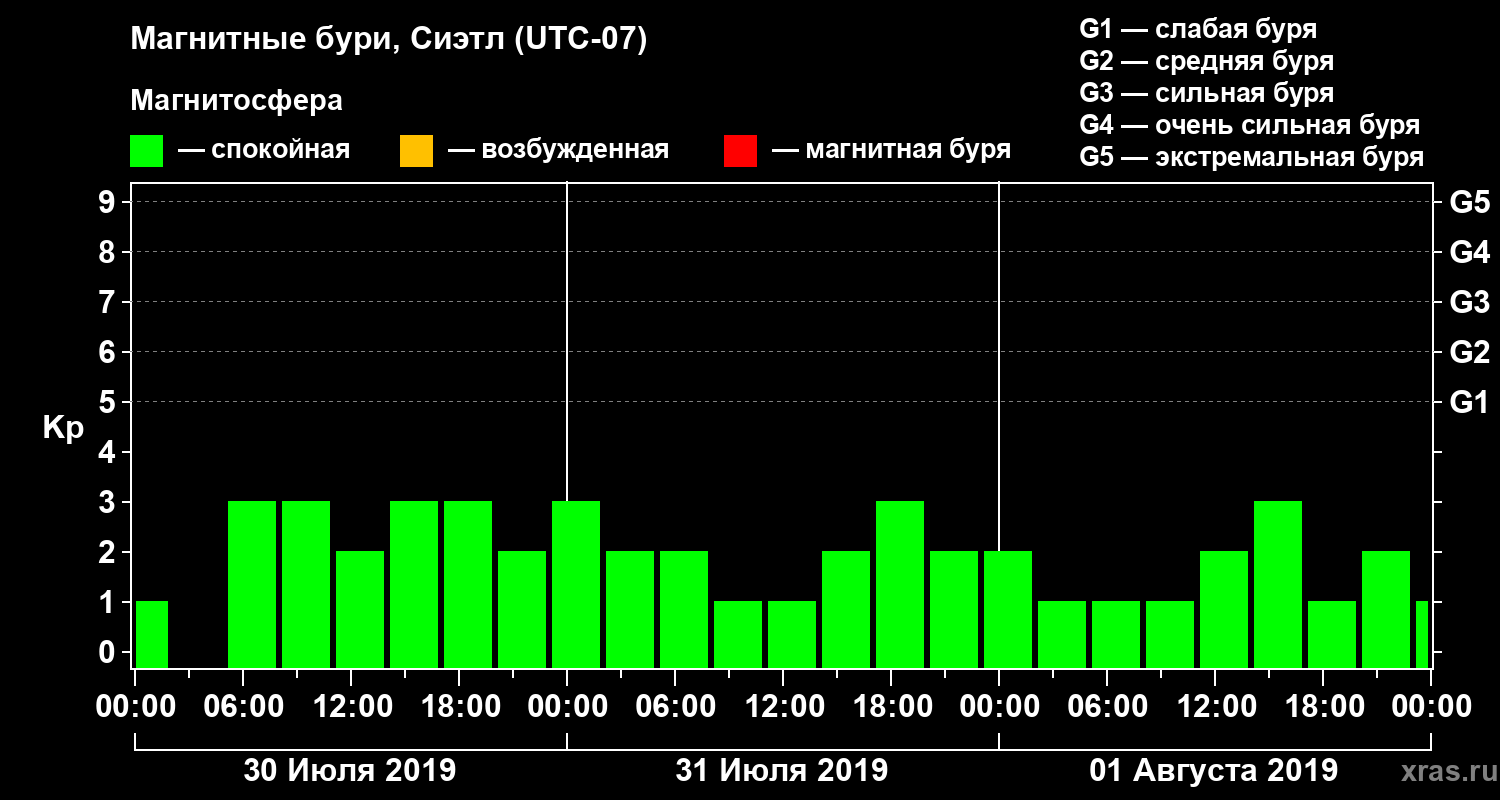 Магнитные бури в Сиэтле 1 августа 2019 года