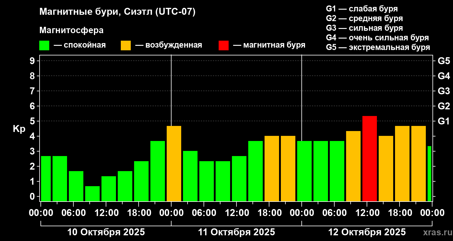 Магнитные бури в Сиэтле 12 октября 2025 года