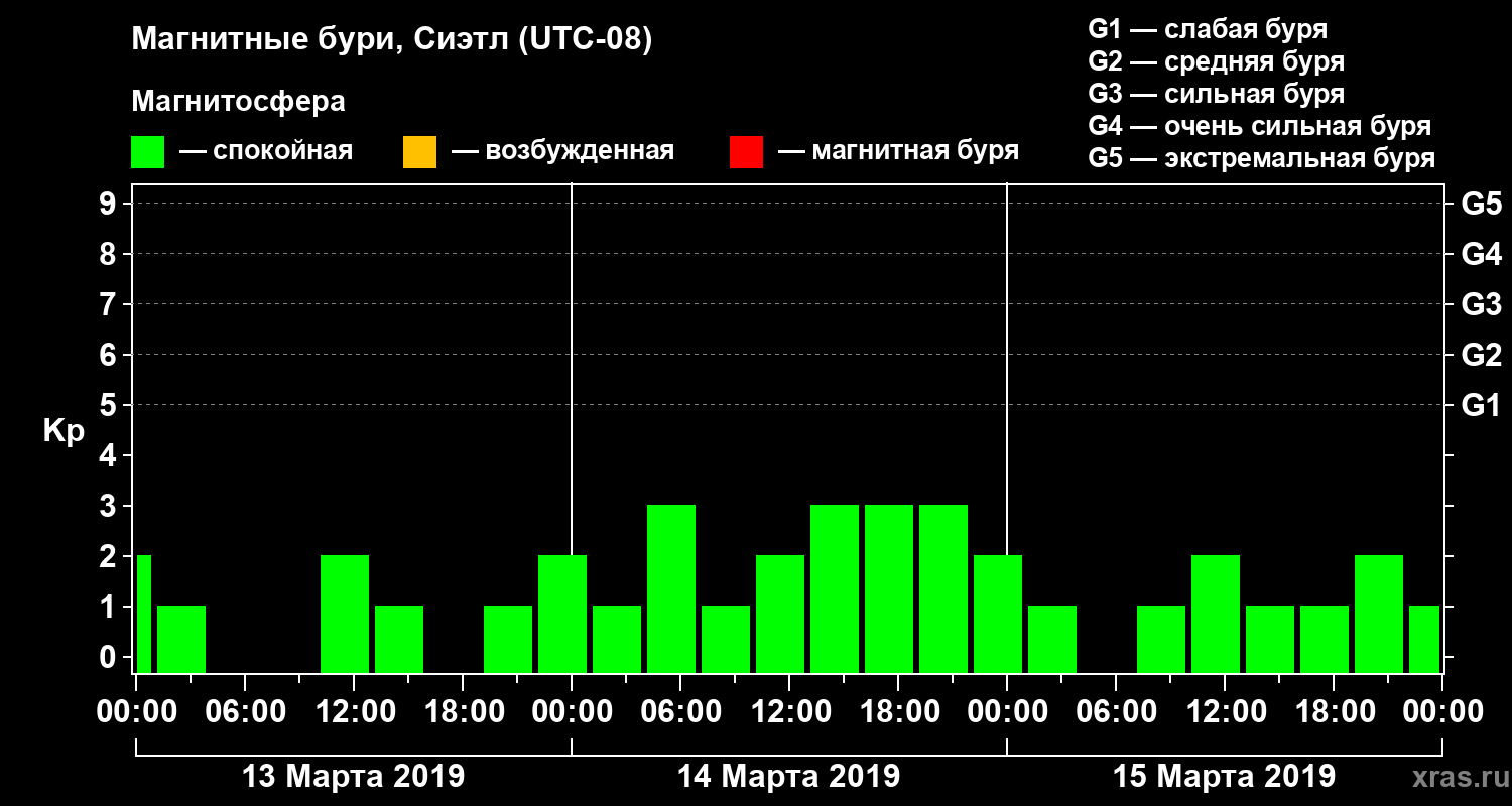 Магнитные бури в Сиэтле — 15 марта 2019 года