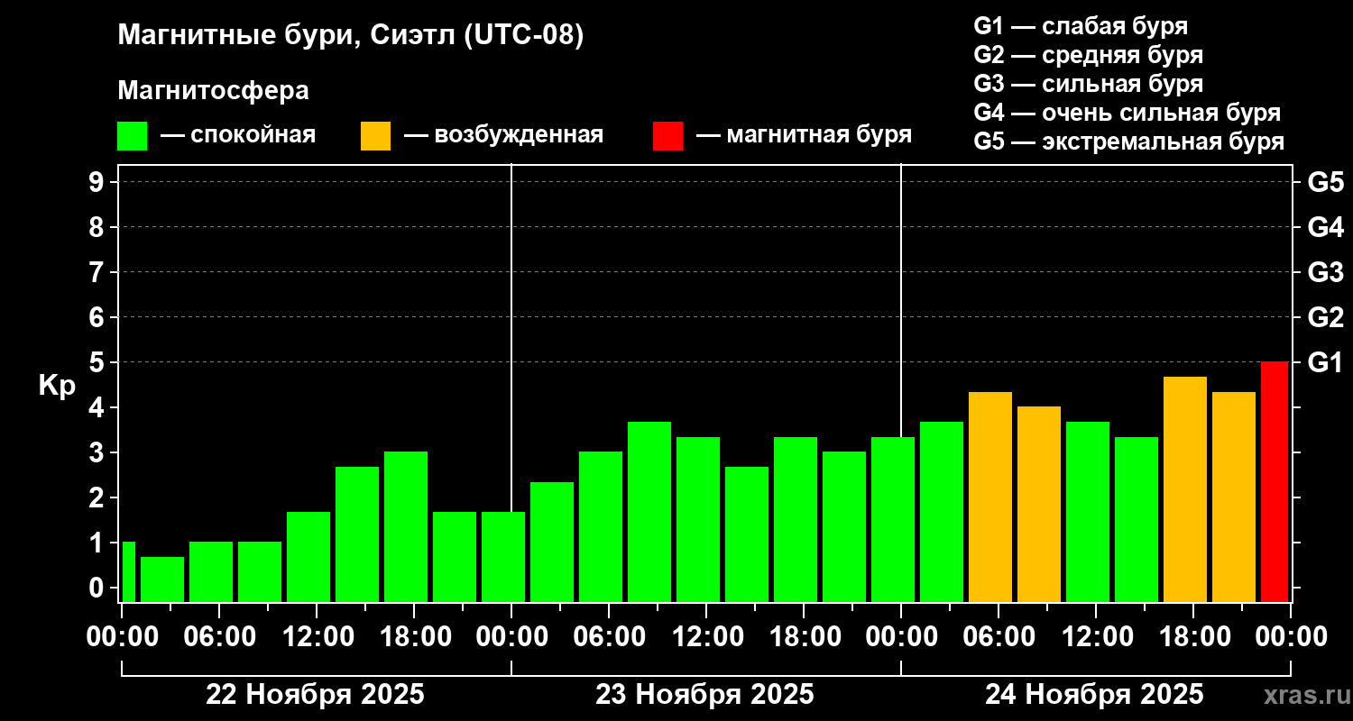 Магнитные бури в Сиэтле — 24 ноября 2025 года