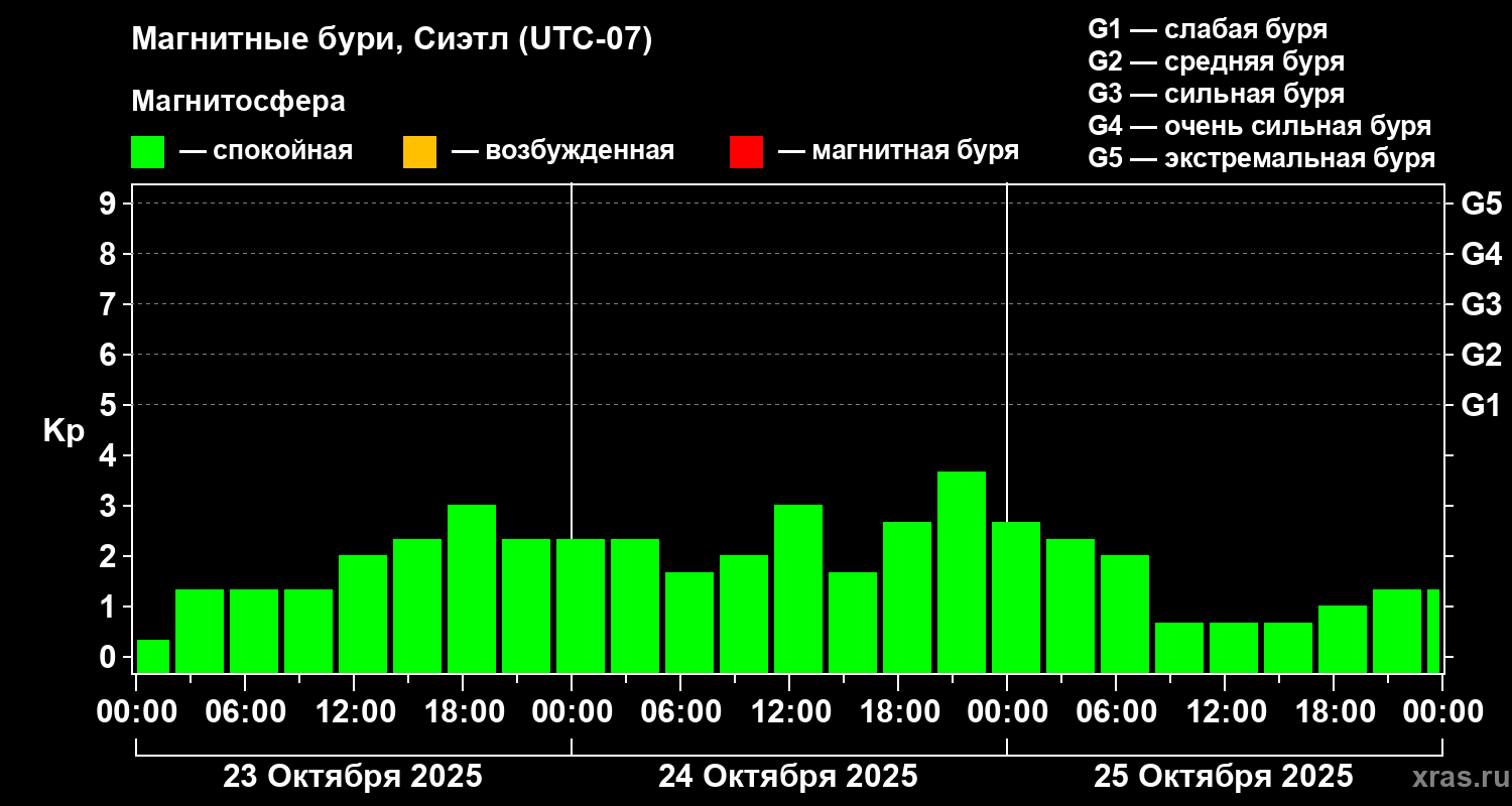 Магнитные бури в Сиэтле — 25 октября 2025 года
