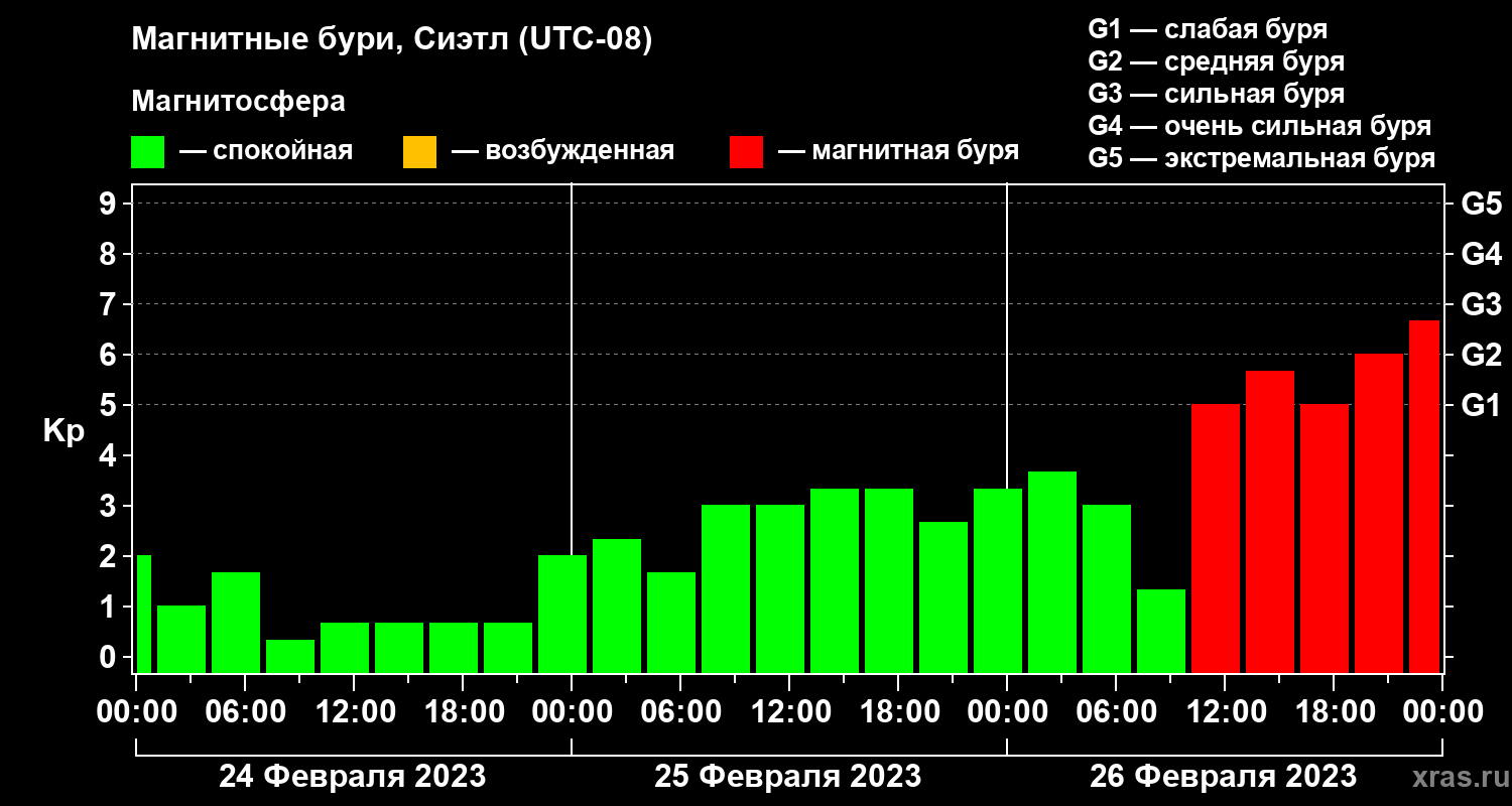 Магнитные бури в Сиэтле — 26 февраля 2023 года