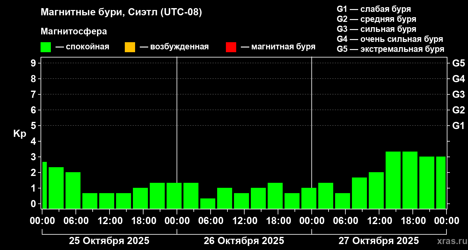 Магнитные бури в Сиэтле — 27 октября 2025 года