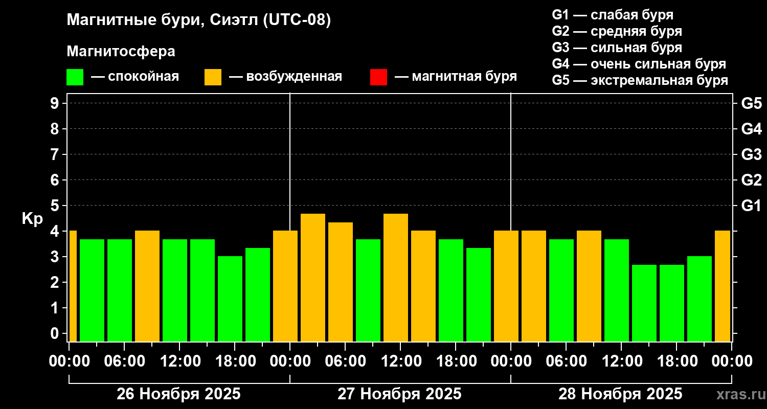 Магнитные бури в Сиэтле — 28 ноября 2025 года