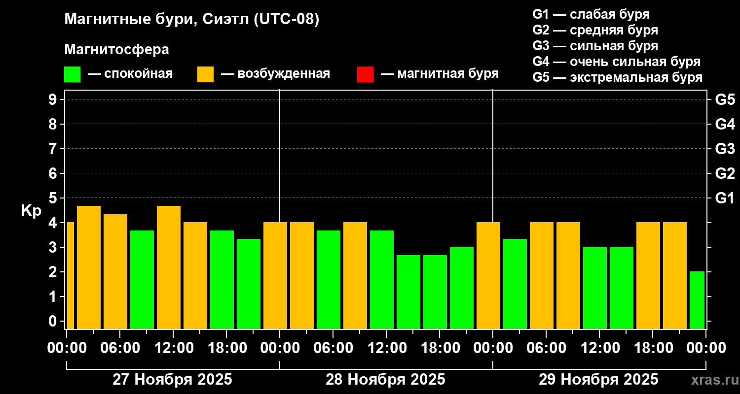 Магнитные бури в Сиэтле — 29 ноября 2025 года