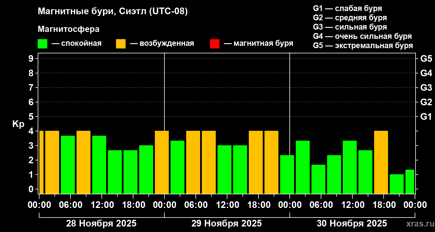 Магнитные бури в Сиэтле — 30 ноября 2025 года