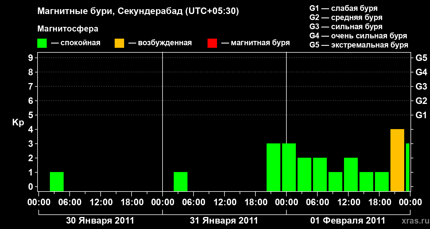 Магнитные бури в Секундерабаде 1 февраля 2011 года