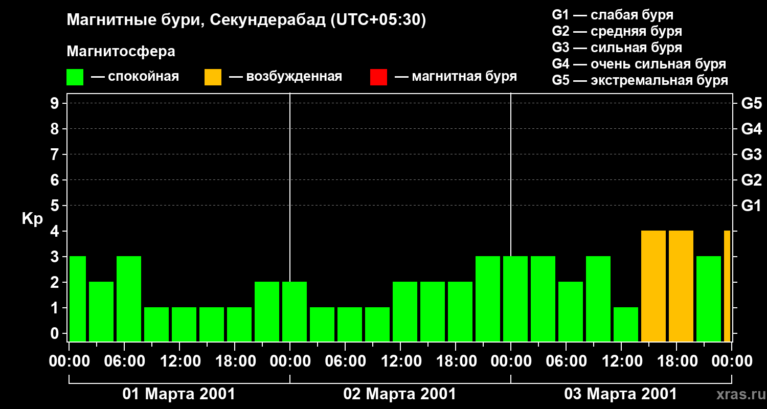 Магнитные бури в Секундерабаде — 3 марта 2001 года