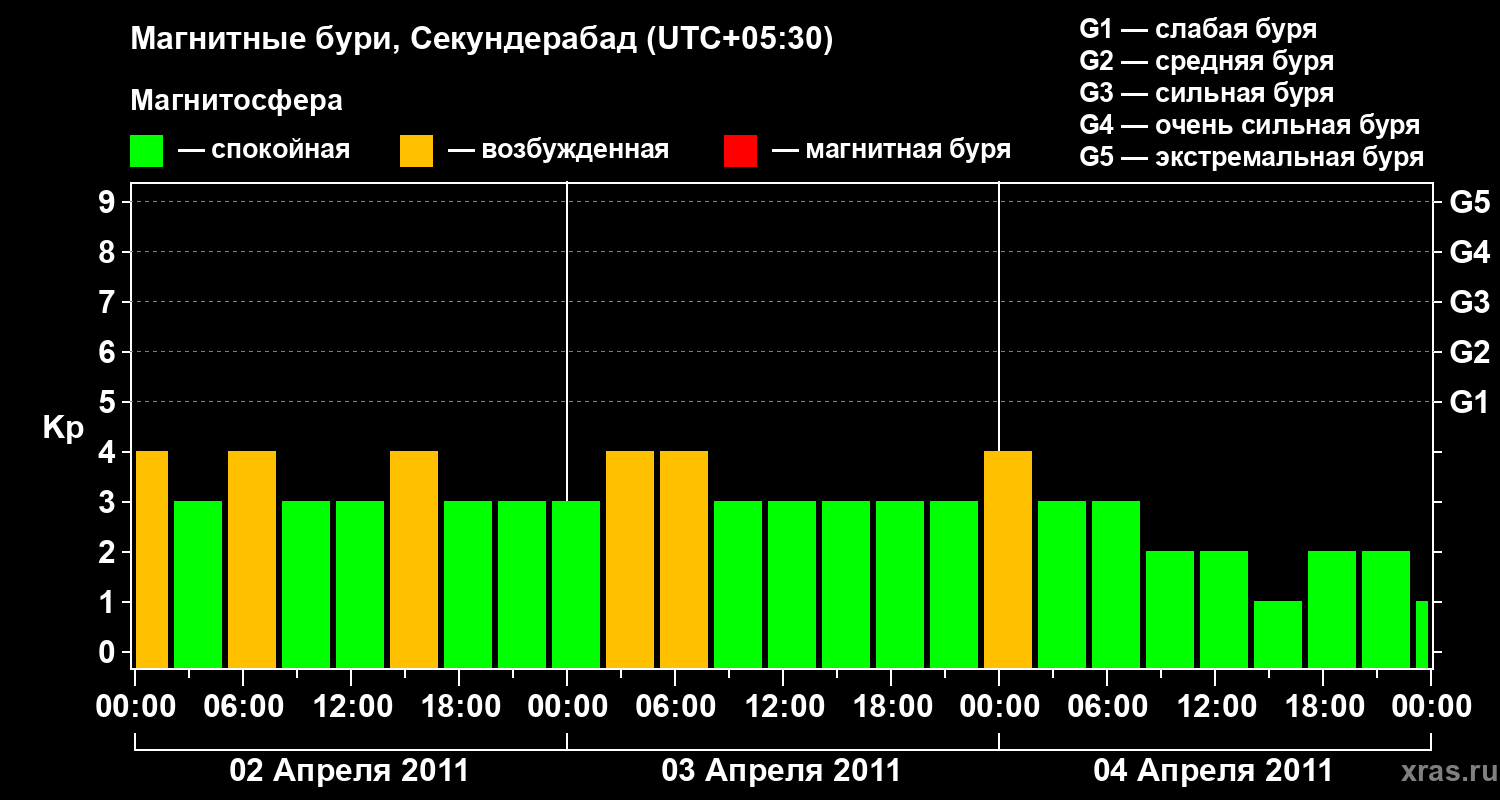 Магнитные бури в Секундерабаде 4 апреля 2011 года