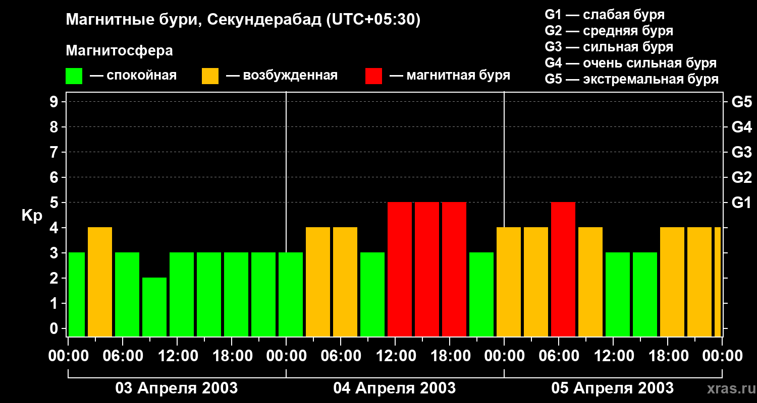 Магнитные бури в Секундерабаде — 5 апреля 2003 года
