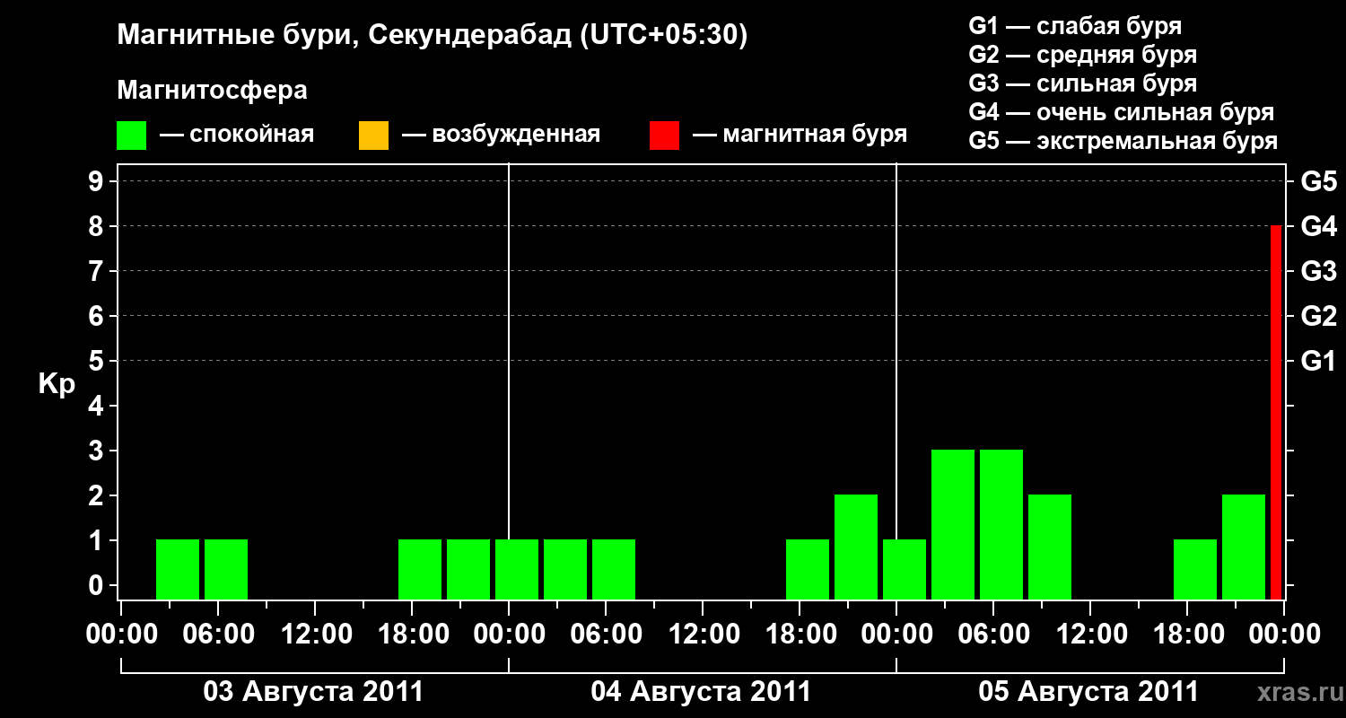 Магнитные бури в Секундерабаде 5 августа 2011 года