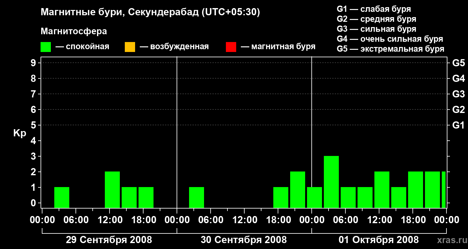 Магнитные бури в Секундерабаде 1 октября 2008 года