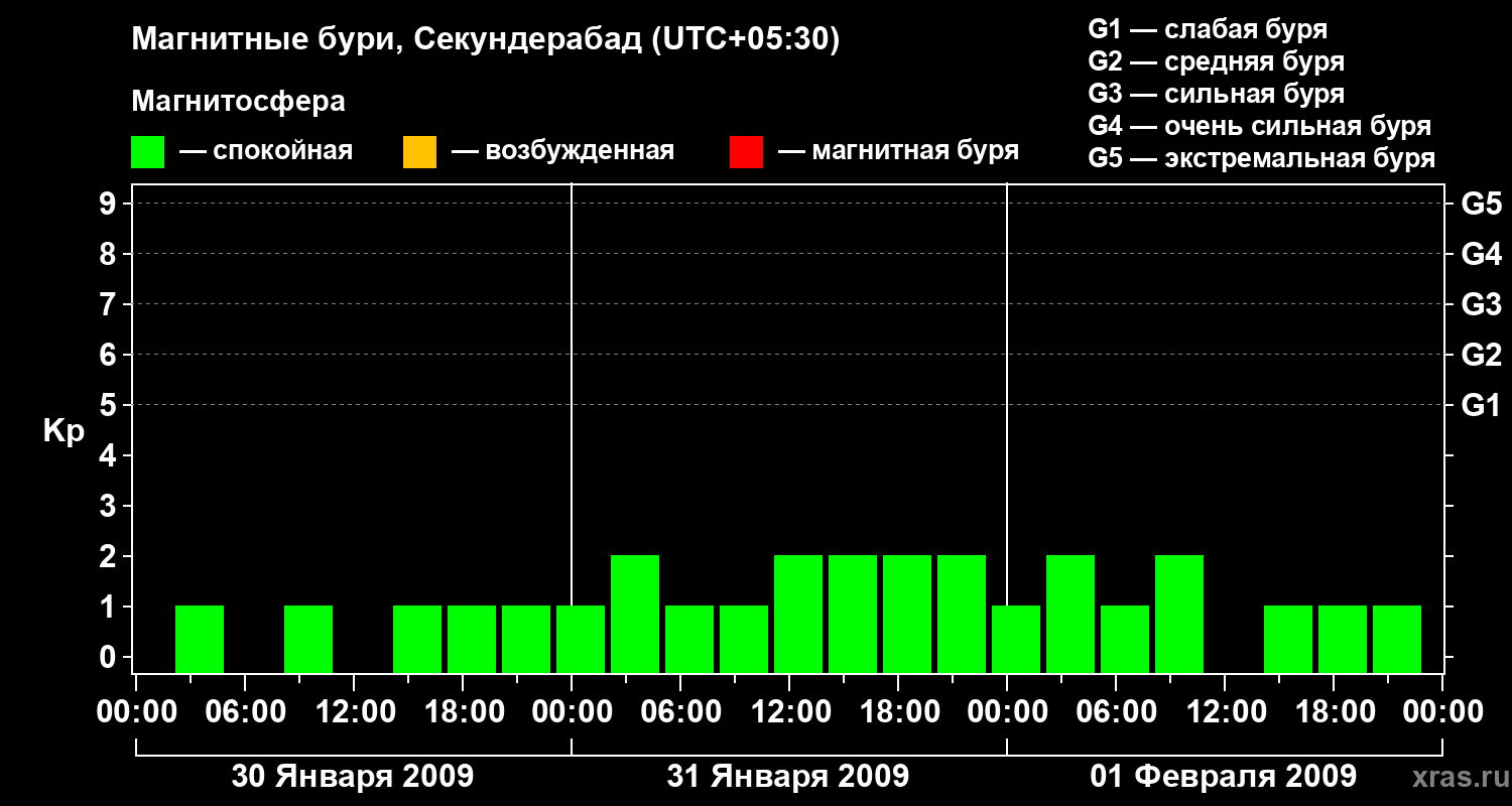Магнитные бури в Секундерабаде — 1 февраля 2009 года