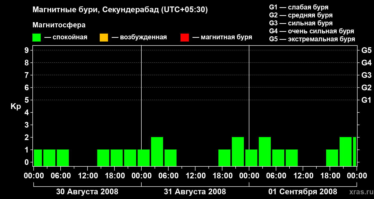 Магнитные бури в Секундерабаде — 1 сентября 2008 года