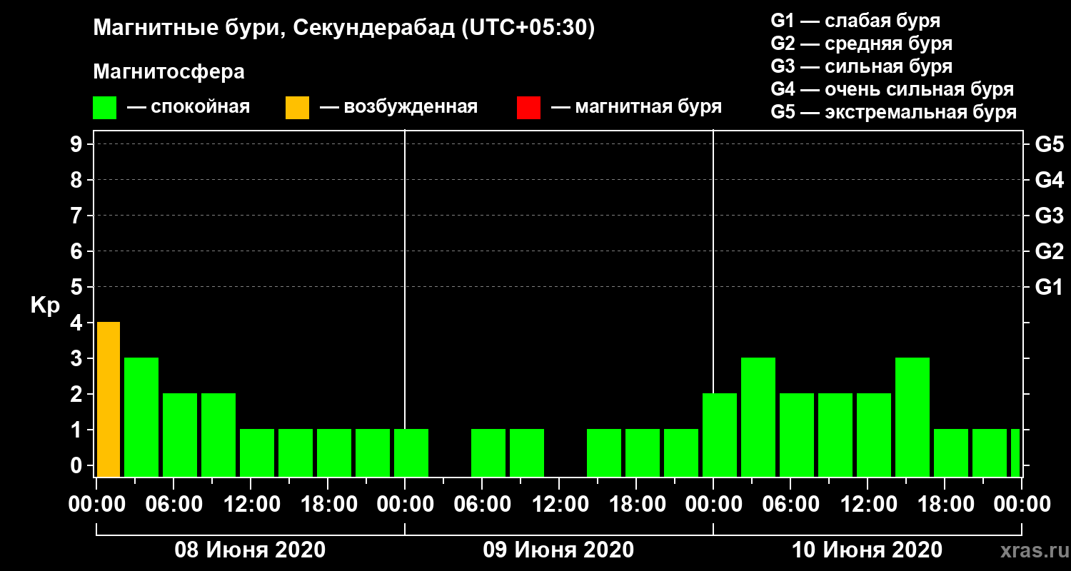 Магнитные бури в Секундерабаде 10 июня 2020 года