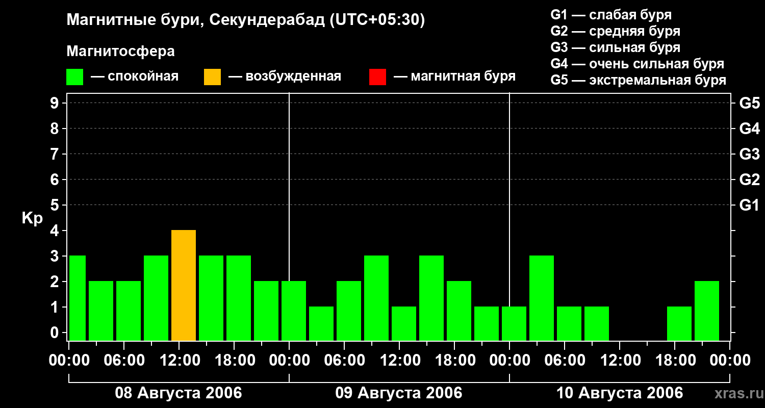 Магнитные бури в Секундерабаде 10 августа 2006 года