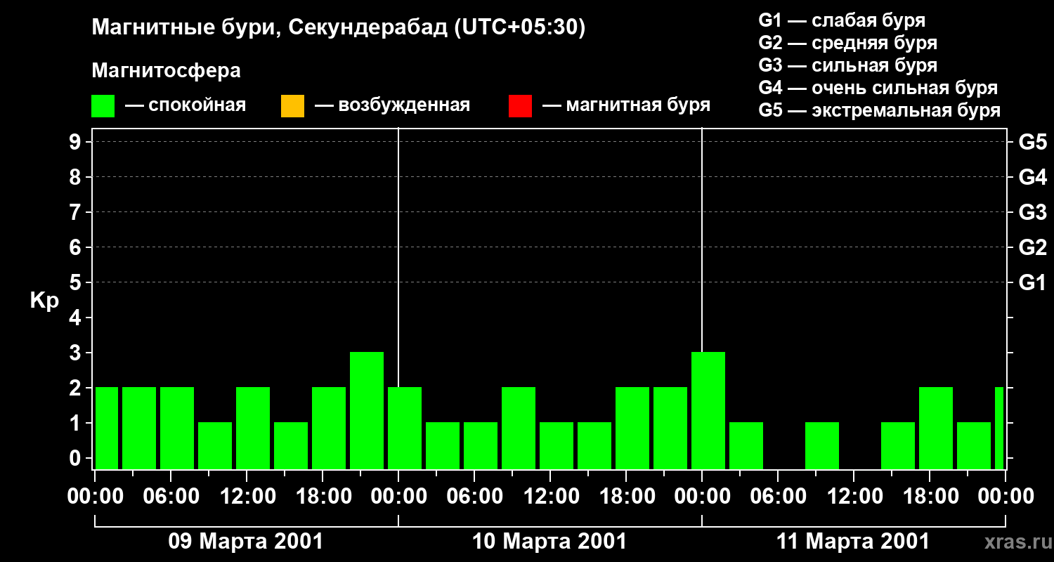 Магнитные бури в Секундерабаде — 11 марта 2001 года