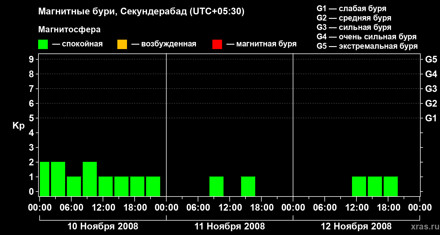 Магнитные бури в Секундерабаде 12 ноября 2008 года
