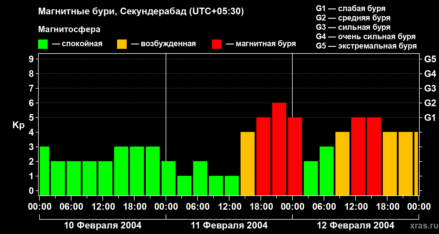 Магнитные бури в Секундерабаде — 12 февраля 2004 года
