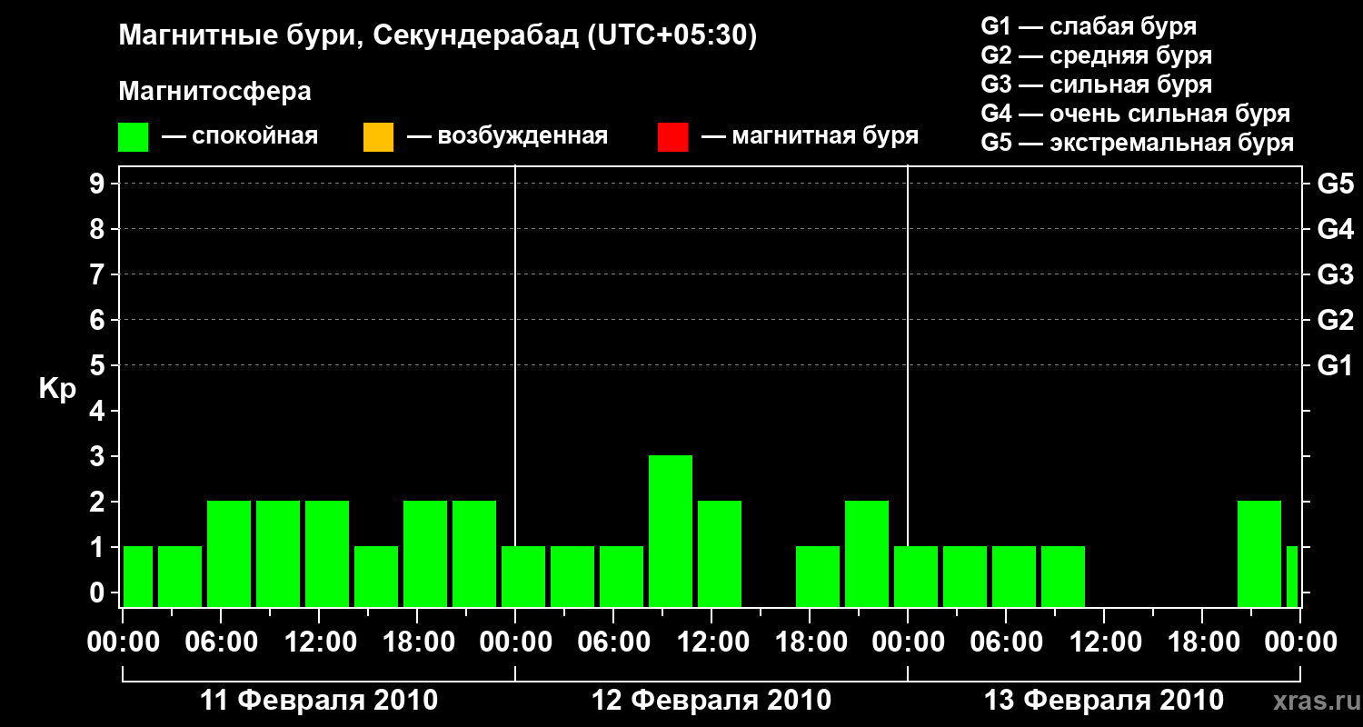 Магнитные бури в Секундерабаде — 13 февраля 2010 года