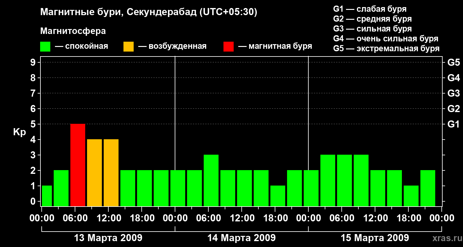 Магнитные бури в Секундерабаде — 15 марта 2009 года