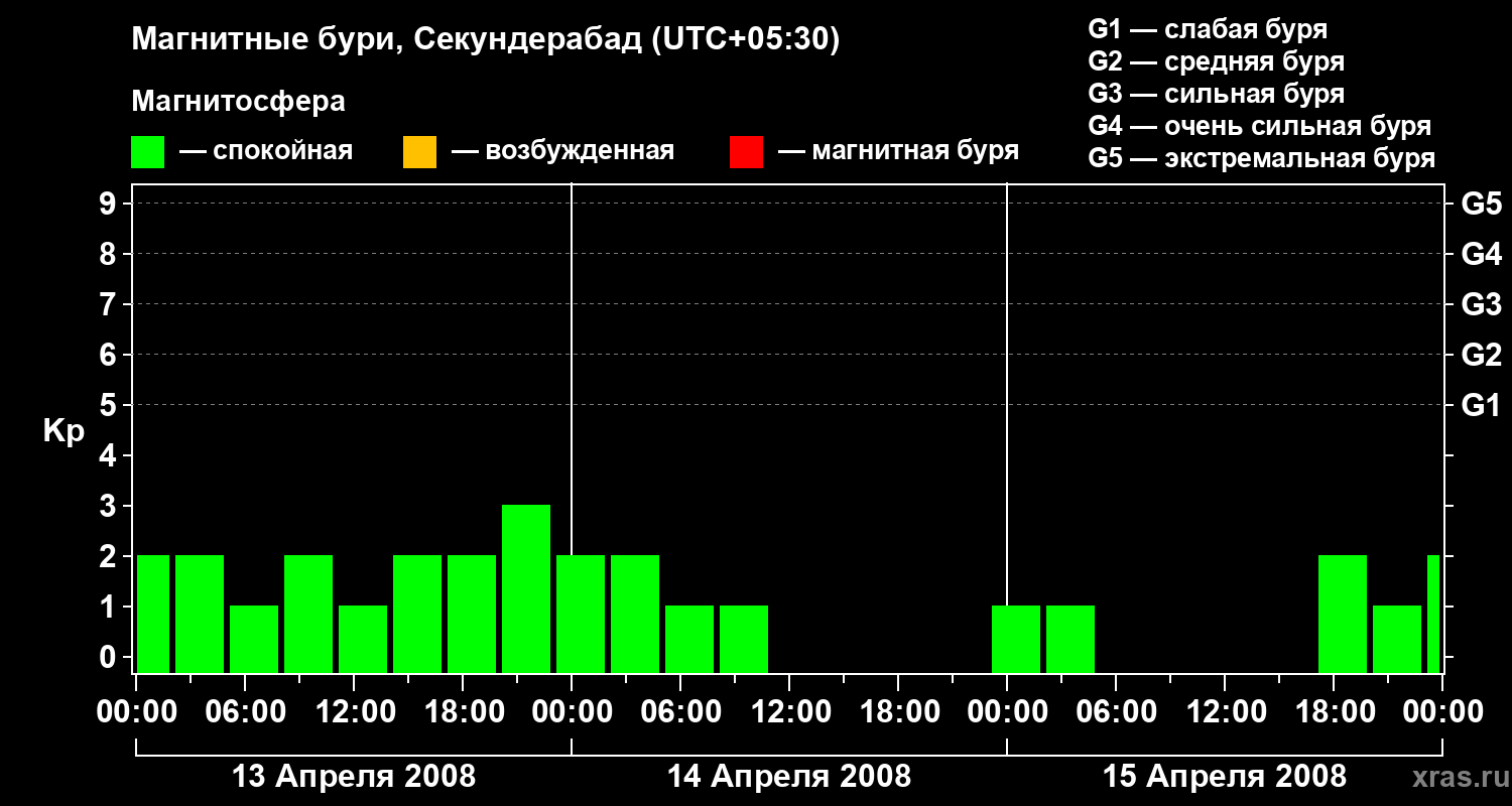 Магнитные бури в Секундерабаде 15 апреля 2008 года