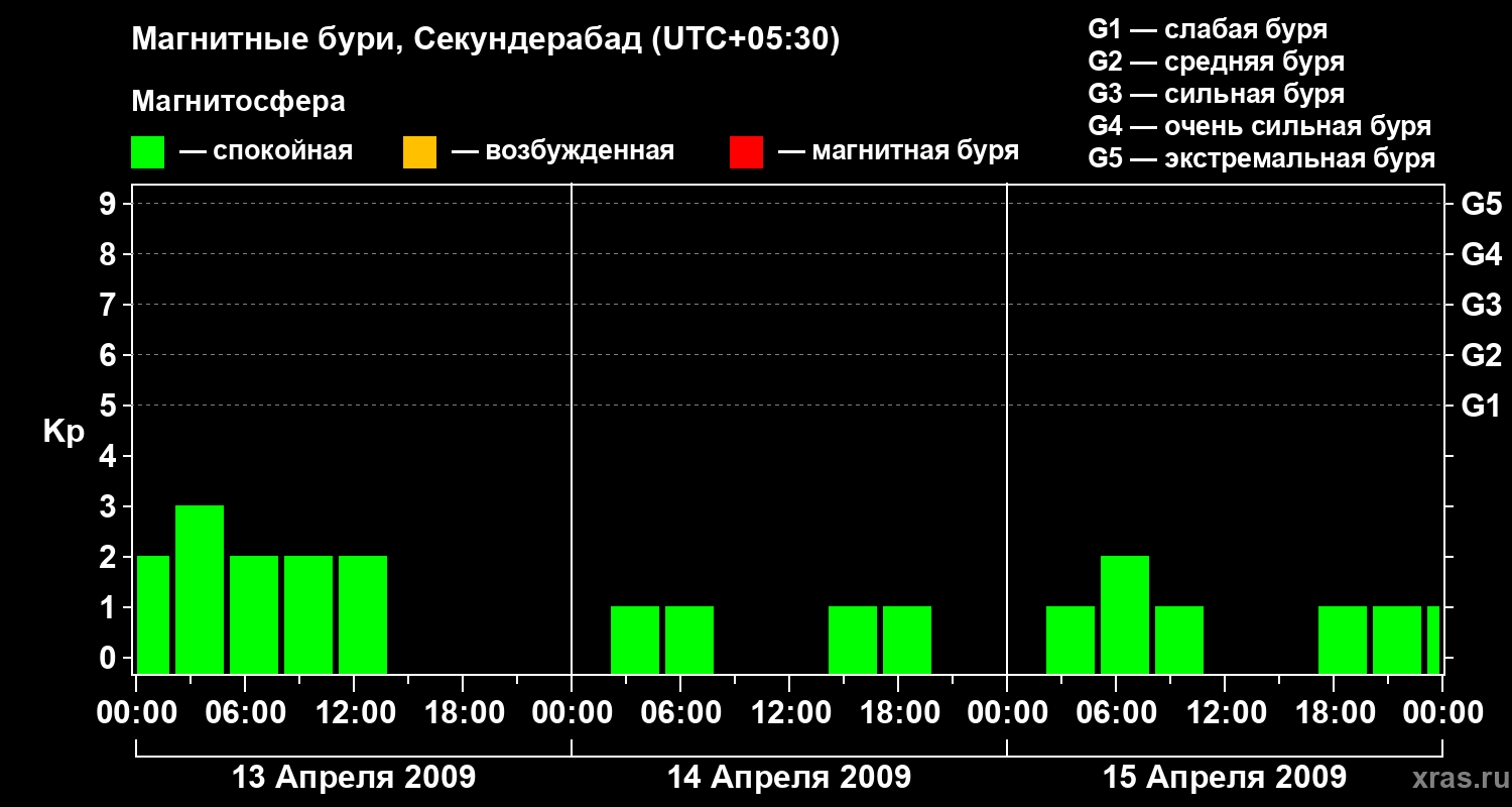 Магнитные бури в Секундерабаде 15 апреля 2009 года