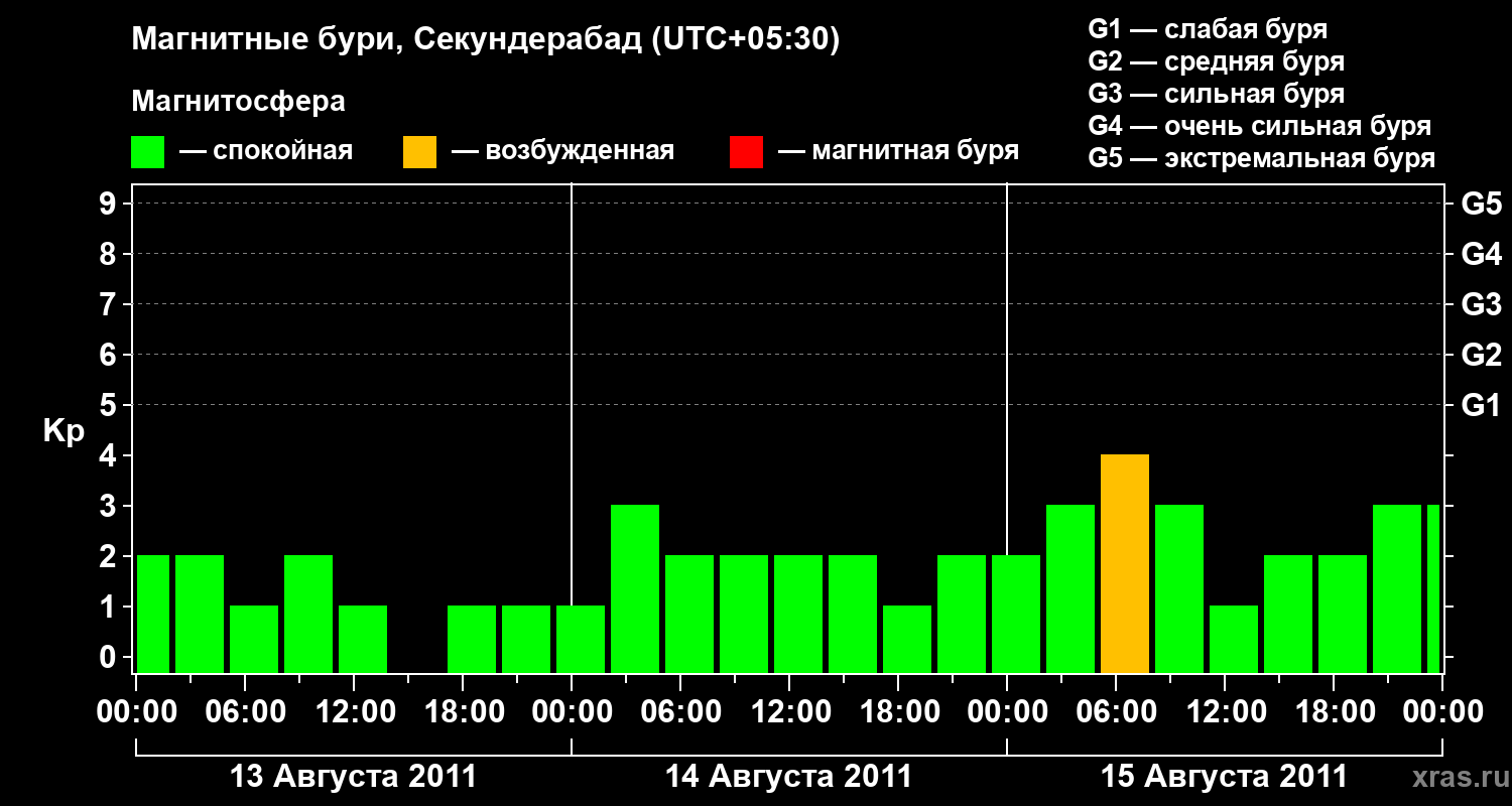 Магнитные бури в Секундерабаде 15 августа 2011 года