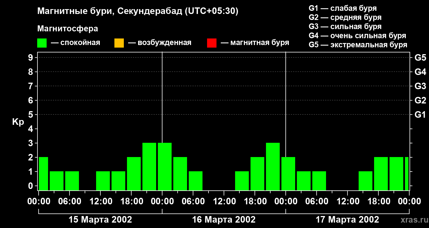 Магнитные бури в Секундерабаде в марте 2002 года