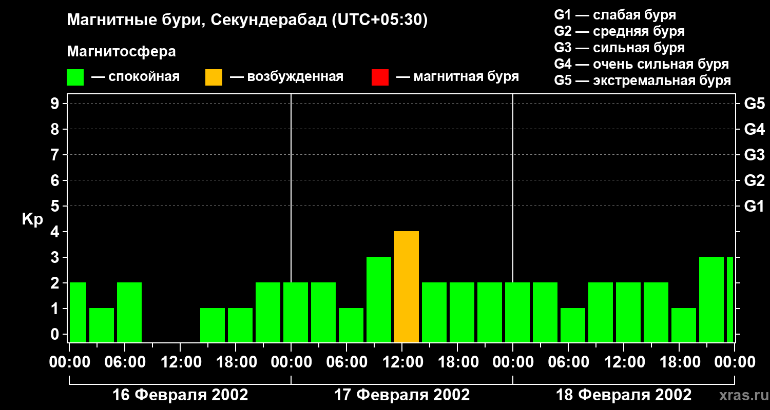 Магнитные бури в Секундерабаде — 18 февраля 2002 года