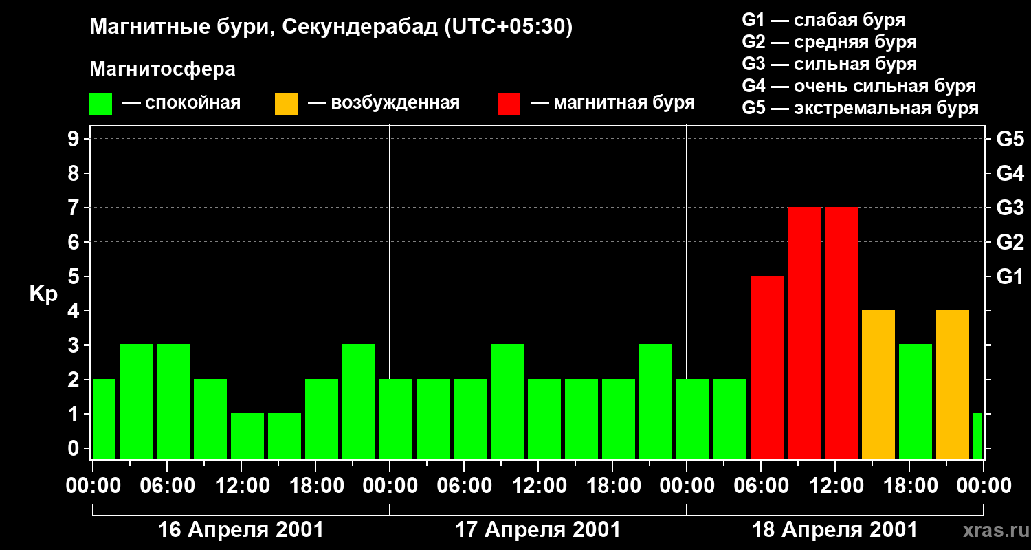 Магнитные бури в Секундерабаде — 18 апреля 2001 года