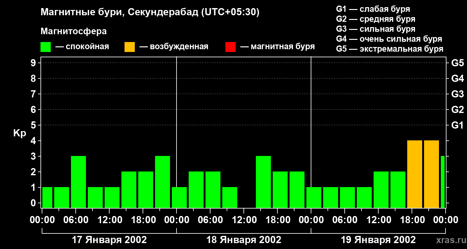 Магнитные бури в Секундерабаде — 19 января 2002 года
